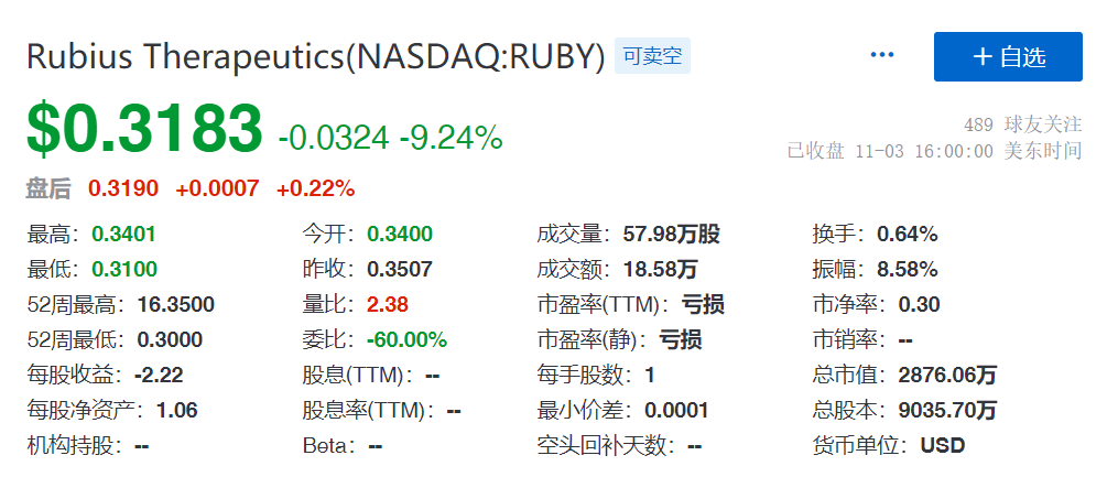 不过,一系列重组措施下来后,投资者对Rubius的信心已跌到谷底。目前Rubius股价跌至不足1美元,市值不到1亿美元。