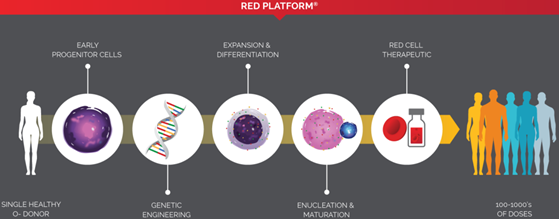 公司的核心技术为工程化红细胞疗法技术,主要是从单个O型血的志愿者体内收集CD34+造血干细胞,通过病毒载体转染等技术对CD34+造血干细胞进行基因改造,之后再进行增殖和定向分化,使其分化为成熟的无核红细胞,最终形成红细胞治疗产品。