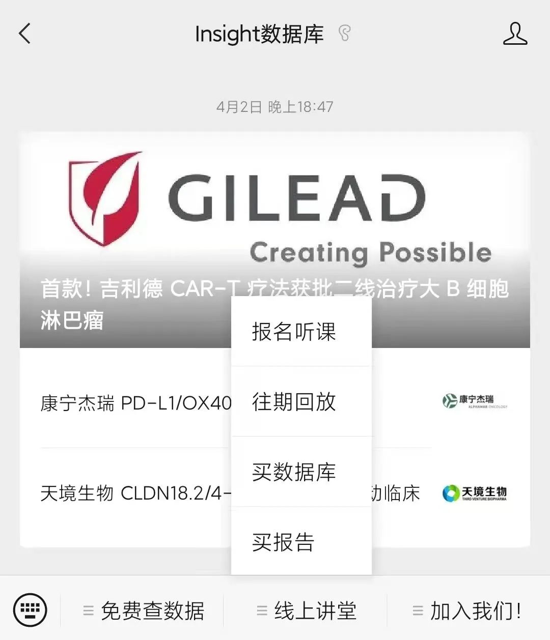 丁香园 Insight 数据库是丁香园在药学领域建立的数据情报平台及数据库报告服务提供商。