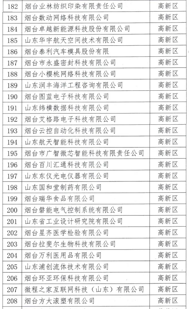 附2022年度烟台高新区“专精特新”中小企业名单: