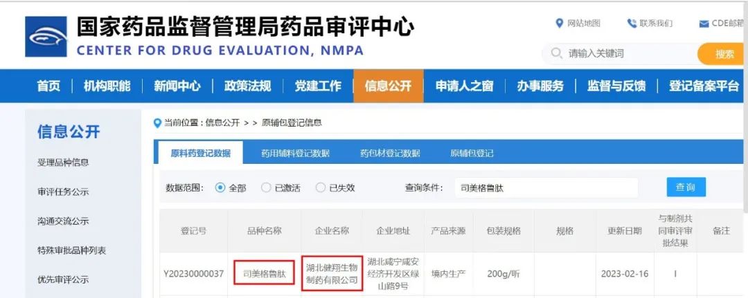 2023年2月16日,国家药品监督管理局药品审评中心官网公示,健元医药下属生产地-湖北健翔生物制药有限公司注册申报的司美格鲁肽原料药[登记号:Y20230000037]已获得受理。健元医药成为该产品国内首批上市申请获得受理的原料药厂家之一。