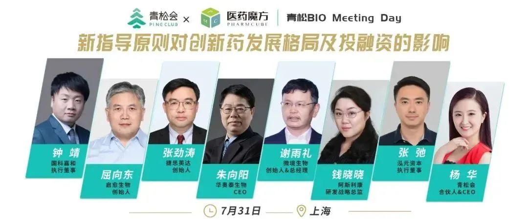 7月31日,上海,青松会联合医药魔方举办青松BIO Meeting Day ,我们邀请了投资合伙人、Biotech创始人、 BigPharma高管一起来聊一聊新指导原则下中国医药创新之路。