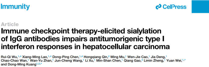 Immunity | 邝栋明团队揭示免疫治疗诱发的IgG抗体唾液酸化修饰导致肝癌免疫逃逸