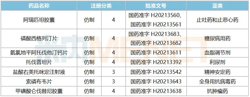 表1:南京正大天晴制药2021年至今获批的仿制药