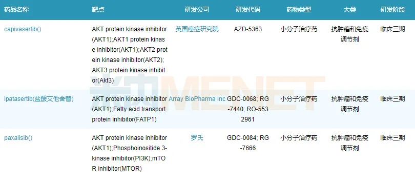 图3:全球进入Ⅲ期临床的AKT相关产品情况