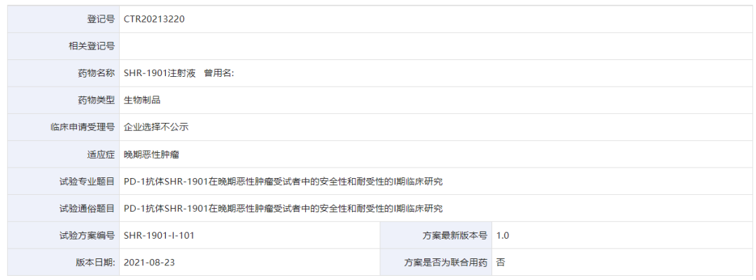 Insight 数据库显示,SHR-1901 在今年 6 月首次申报临床,8 月获批临床。