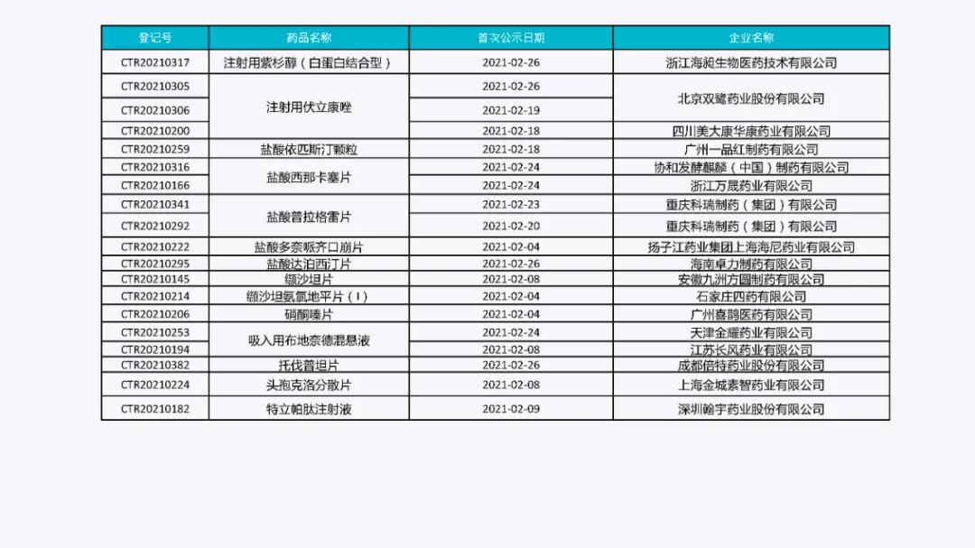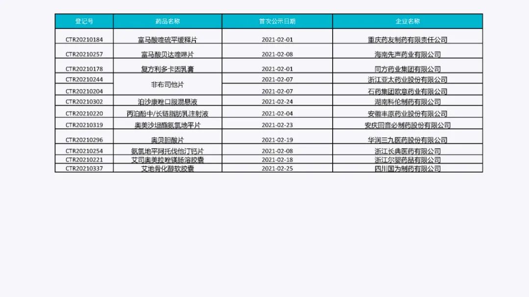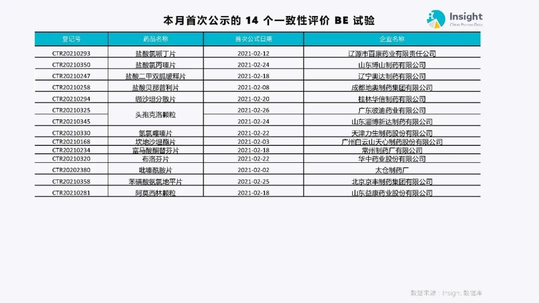 ◆ 有 14 个一致性评价 BE 试验首次公示(附名单)