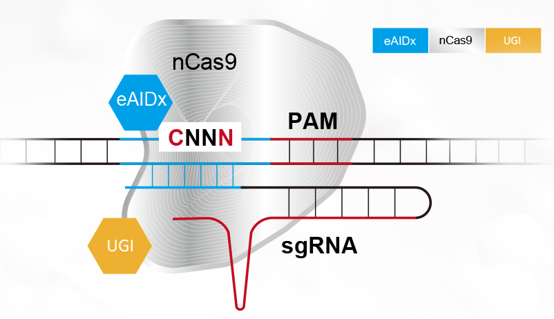 TAM BE是基于活化B细胞中激活诱导的脱氨酶(AID)高活性变体为基础开发而成的胞嘧啶脱氨酶。在sgRNA的引导下,TAM BE能在特定位点实现C>T, G>A的转换。人类90%以上蛋白编码基因都有不同的mRNA拼接产物,不同的拼接产物与基因的生理和病理功能有关。RNA的拼接过程非常复杂,涉及到DNA上的顺式元件和大量的拼接蛋白和RNA。相比复杂的反式原件,基因组上的cis元件更简单更容易操作。绝大多数(95.5%)的内含子两侧的拼接位点为GT-AG序列,其余为AT-AC 序列。TAM BE通过将拼接位点保守的G转换为A,破坏拼接位点,从而实现RNA不同的拼接体形成。TAM BE对拼接的调控可潜在用于多种拼接相关的疾病的治疗,如杜氏肌营养不良(DMD)。