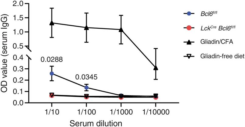 这些作者将不同类型的食物喂给这些受试小鼠一周,然后测量它们产生的免疫反应。他们发现,在摄入含有麦醇溶蛋白的食物后,这些小鼠肠道中的T细胞数量略有增加,而且其中的一小部分T细胞产生了微弱的抗体反应---值得注意的是,它们中的许多是调节性T细胞(Treg细胞),它们往往具有免疫抑制作用,这可能部分上解释了对肠道中发现的食物普遍没有反应。他们还发现一些T细胞似乎与通常在免疫反应中发现的T细胞类型不同,尽管他们指出,它们可能是Treg细胞的前体细胞。在他们的实验中,他们发现在肠道中对食物的存在作出反应的T细胞中没有一种是可以触发炎症的T细胞类型。