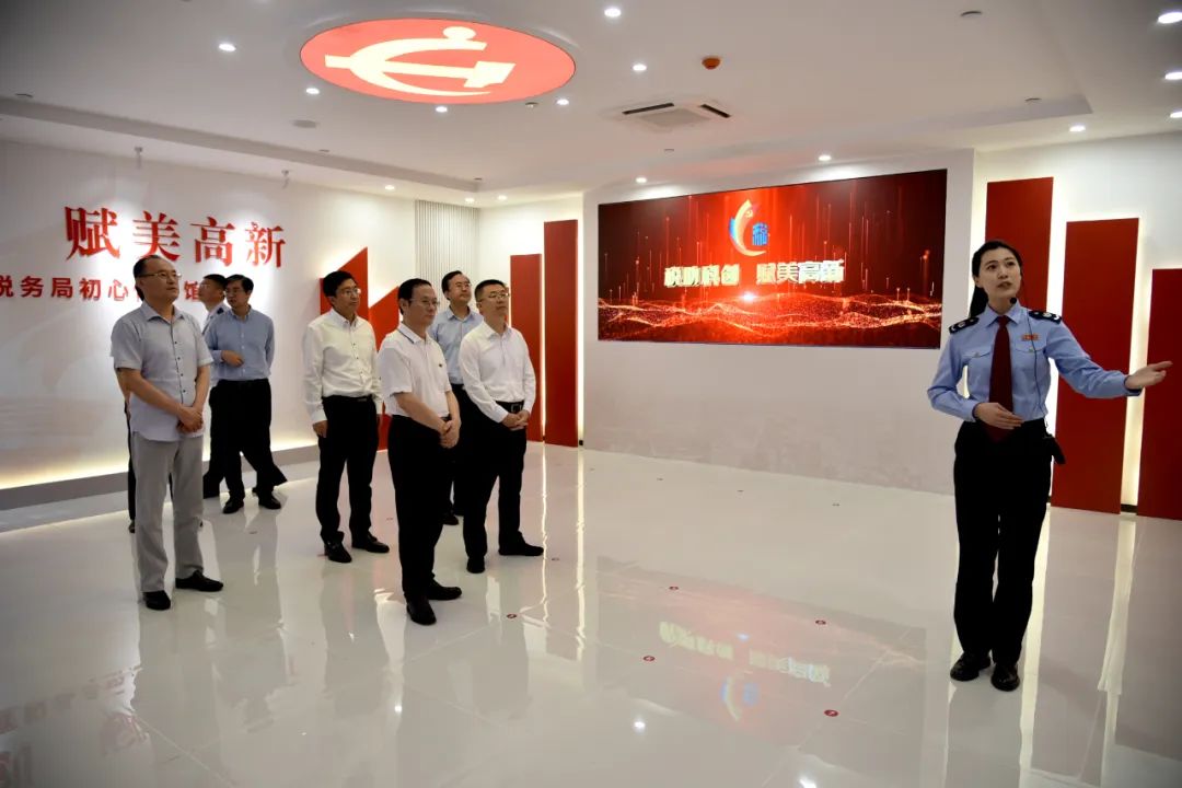在海克斯康智慧产业园,伍舫一行来到企业展厅,听取项目建设、技术研发、智能制造、生产运营等情况介绍,并与企业负责人座谈,了解留抵退税政策落实情况。在高新区税务局“办问协同”服务中心,伍舫一行现场观看税务人员通过视频连线、同屏共享,远程指导纳税人办理业务,听取服务流程介绍,对高新区推进办税缴费便利化智能化相关工作给予肯定。