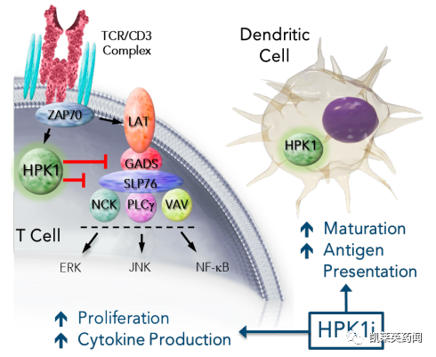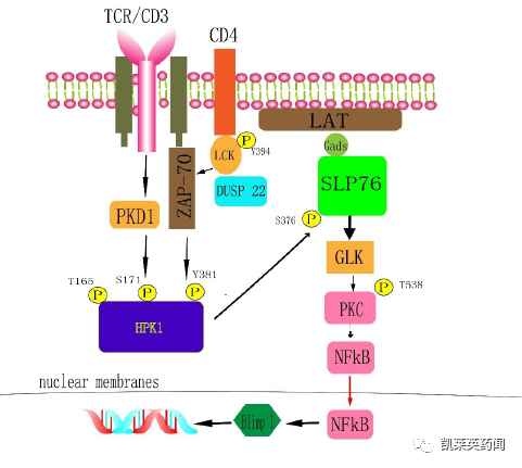 HPK1 在造血细胞中可同时活化c-Jun N末端激酶(JNK)和NFkB 通路并与多种接头蛋白相互作用;