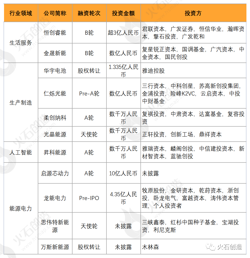 本月能源电力领域最为吸金,融资金额高达14.35亿元,占总融资金额的68.38%。从项目数量上看,生产制造领域也较为活跃。