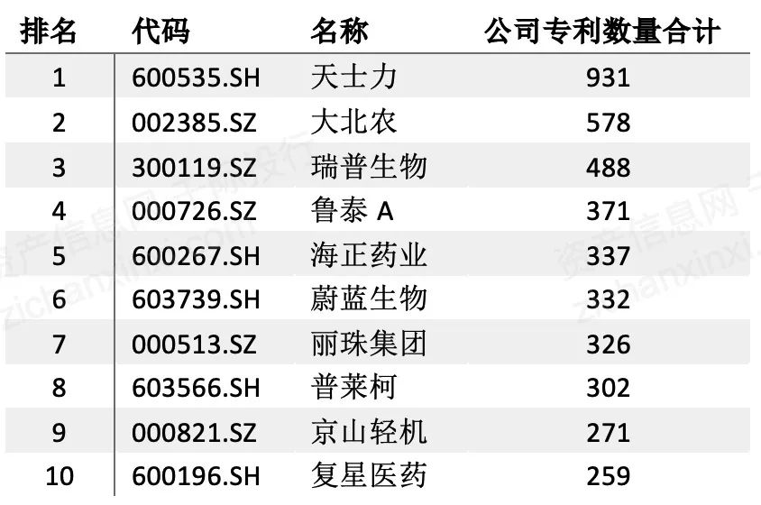 对国内疫苗行业的各个专利申请人的专利数量进行统计,排名前十的疫苗公司依次为天士力、大北农、瑞普生物、鲁泰A、海正药业、蔚蓝生物、丽珠集团、普莱柯、京山轻机等