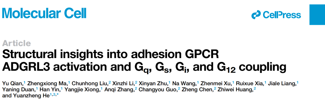 解析了粘附类G蛋白偶联受体蛛毒素受体3 (ADGRL3) 与全部四种主要G蛋白复合物的冷冻电镜结构,阐明了粘附类G蛋白偶联受体特殊的配体结合方式、独特的激活构象和关键的激活机制,并揭示了不同G蛋白偶联选择性的结构基础。