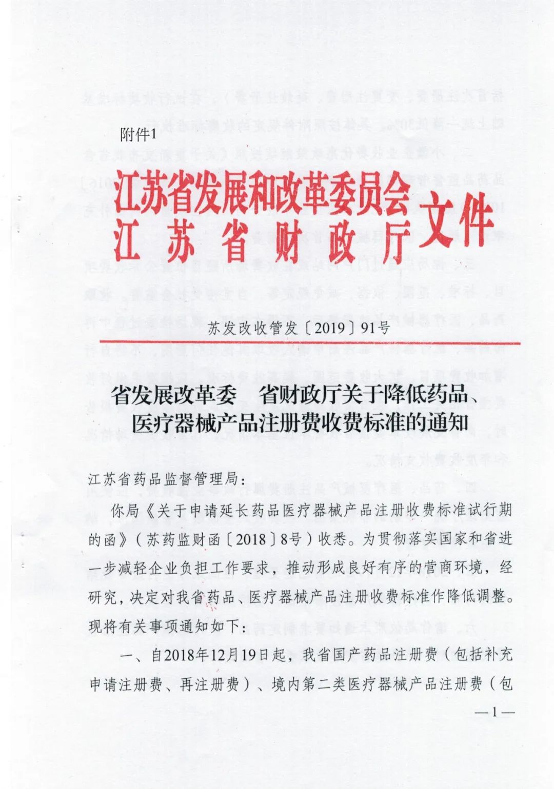 附件:1.省发展改革委 省财政厅关于降低药品、医疗器械产品注册费收费标准的通知
