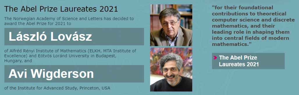 近日,备受瞩目的数学界大奖阿贝尔奖开出 “双黄蛋”,获奖者是数学和计算机领域大佬:一位是匈牙利数学家拉兹洛・洛瓦兹(László Lovász),一位是以色列计算机科学家阿维・威格森(Avi Wigderson)。