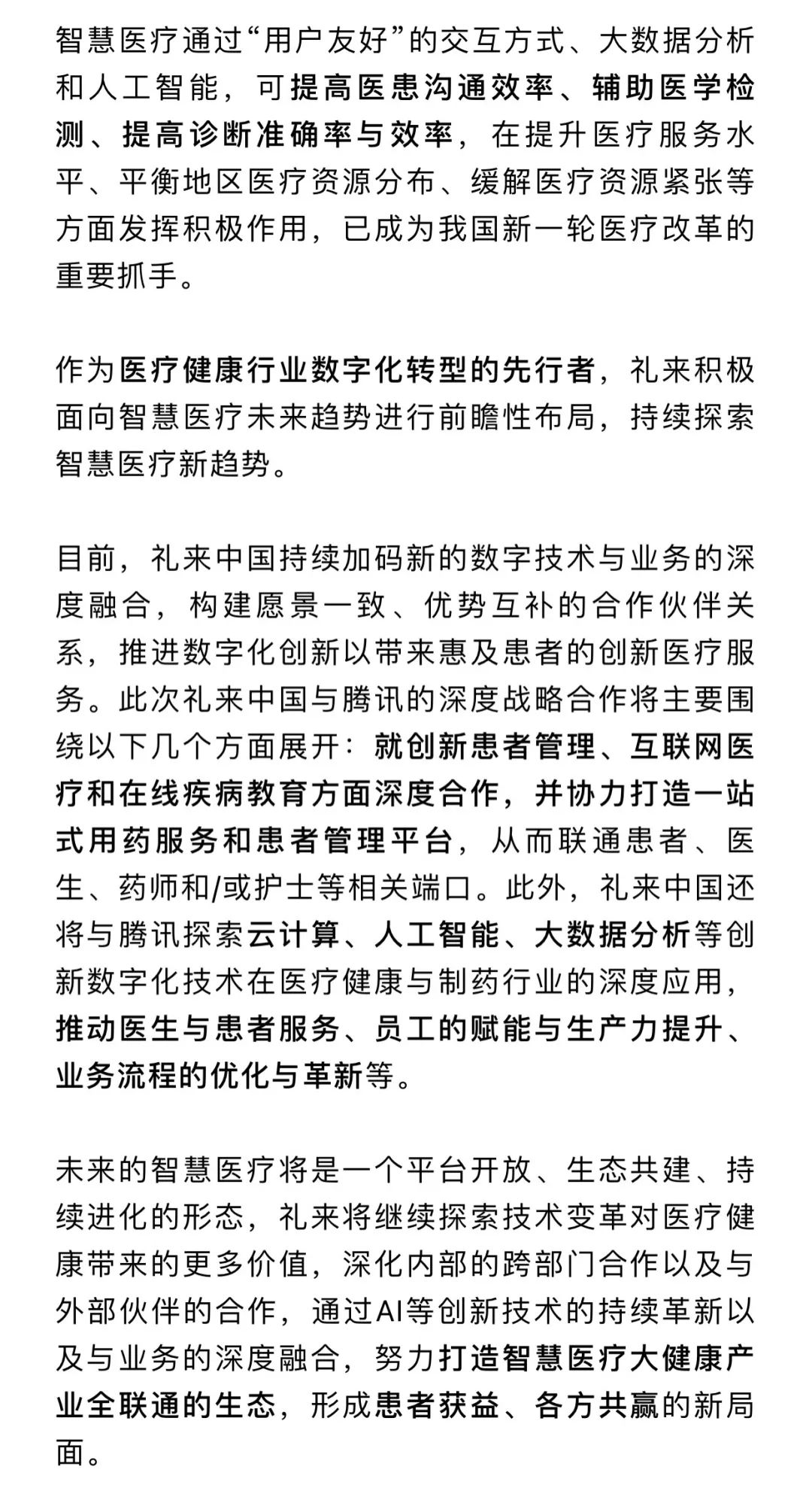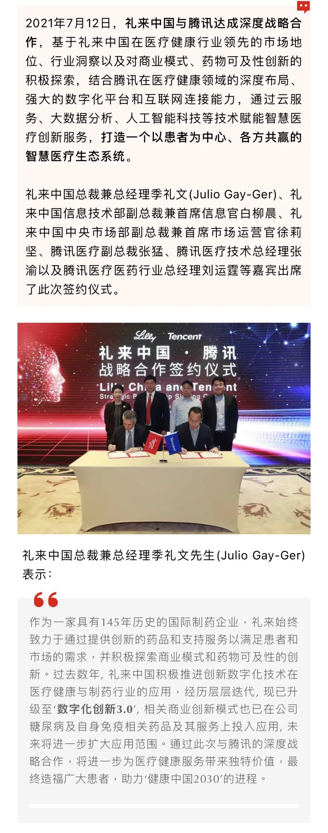 礼来中国与腾讯达成深度战略合作 以数字化创新赋能智慧医疗