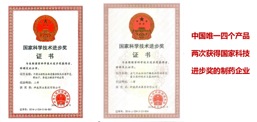 (中国唯一四个产品两次获得国家科技进步奖的制药企业)