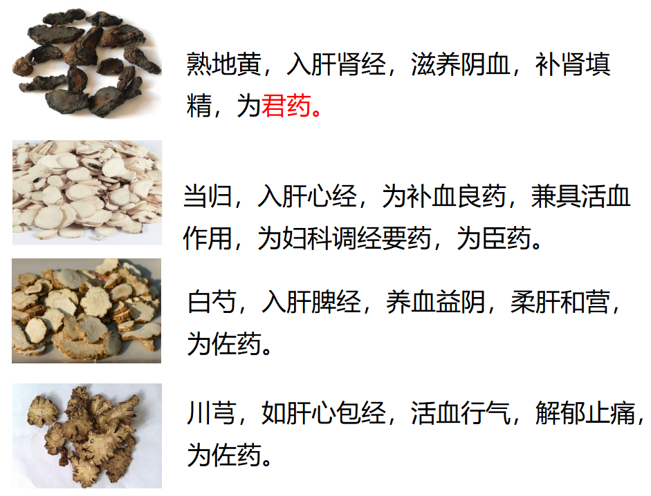 《古方选注》谓其:本方皆入肝补血之品,共四味相类药物配伍,故名“四物汤”。