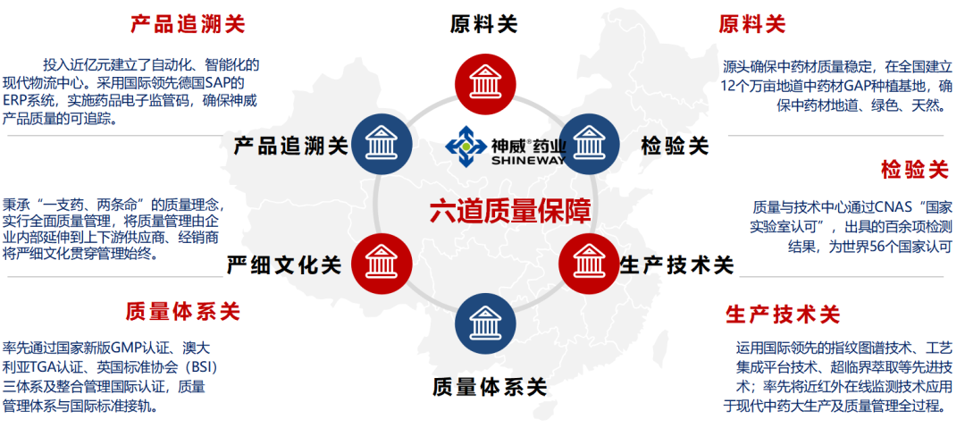 神威药业建立了以现代中药制剂技术为依托的特色中药新药创制新模式,形成了一批拥有自主知识产权的中药创新药物;以技术成果的应用为目标,实现了中药材最优化软件调配、中药先进制剂工艺单元集成等多项前沿技术领域向产业技术领域的过渡,并以产业技术为支撑,推进技术成果的工业化、信息化转化,树立了行业标杆示范的产业技术创新体系及平台,秉承“一支药、两条命”的质量理念,实行全面质量管理,全面推动了中药现代化、标准化的进程,加快了国家现代中药产业升级。