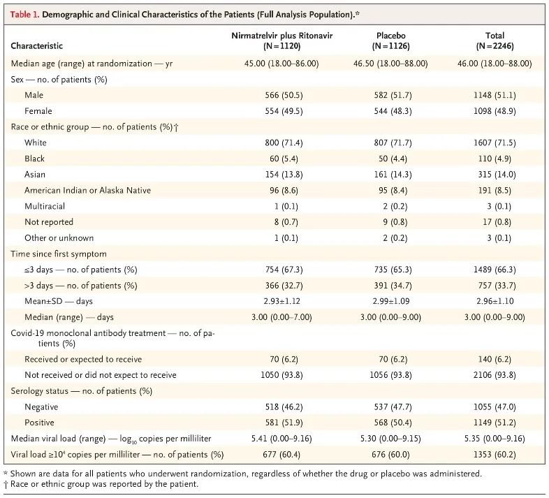 该2/3期临床共有2102例患者参与并完成研究,按1:1随机分组,接受Paxlovid或安慰剂治疗,每12小时一次,持续5天(共10次给药)。