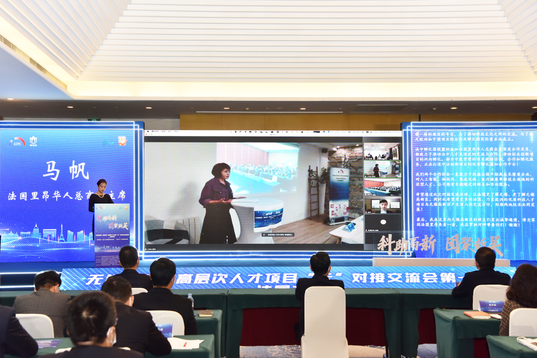 马帆在致辞中表示,无锡历史悠久、风景优雅秀丽、经济文化发达,与法国保持着长期良好合作,在法国有着较高的知名度。此次活动的举办为法国里昂与中国无锡之间的科技创新和人才交流提供了一个优质的对接平台。希望此次对接交流活动让法国更了解无锡、更了解无锡高新区。同时也希望有更多的法国、乃至欧洲的优质科技人才项目与无锡高新区产生深入的交流合作,助推两地经济共同发展!