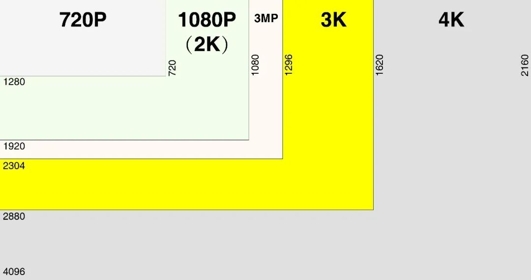 目前2K是影像市场主流分辨率,但在诸如人脸识别及智能检测等智能化应用中,2K分辨率已渐渐不能满足市场对高清视频的需求了。然而在许多高端视频应用向4K分辨率过渡的过程中,又因4K视频受限于传输带宽在h.265编码压制后,导致其最终呈现效果并未达到对4K影像的应用预期,因此在2K与4K之间诞生了3K视频的蓝海市场契机。
