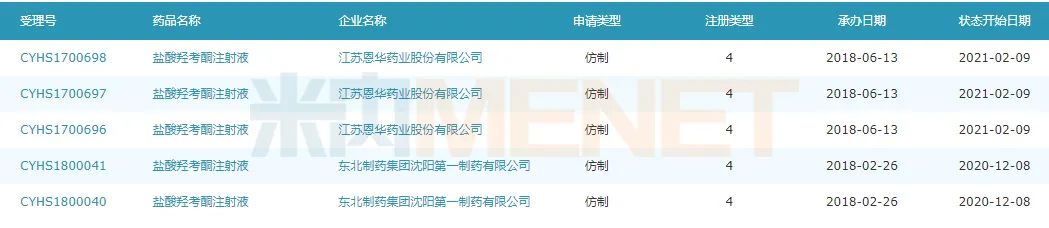 2020年12月,东北制药集团沈阳第一制药的4类仿制获批并视同过评,拿到了该产品“国内首仿+首家过评”,恩华药业本次也按4类仿制获批,成为国内第二家(生产、过评)。