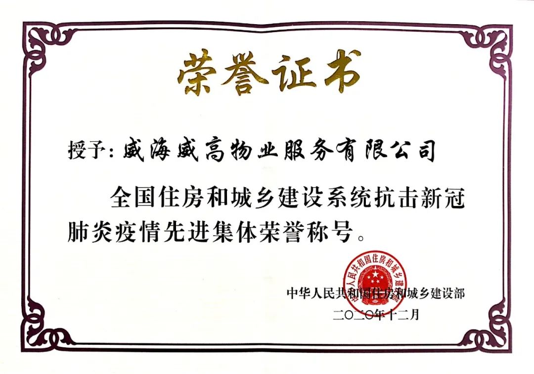 2020年初,新冠疫情突如其来,威高物业党支部在行业主管部门的号召下,于农历腊月28日紧急召开疫情防控部署会议,把疫情防控摆在压倒一切的位置,听党指挥、勇于担当、顽强拼搏,倾尽全力投入到疫情防控斗争中,得到市、区主管部门大量一线物资支援。威高物业先后投入105万元防疫资金,累计发放口罩15万只、测温枪218支,消耗消毒液3吨、酒精2吨、防护服300套,测温240万人次,消毒面积约240万平方米,实现了威高物业服务的13个住宅小区、近3万业主零感染。