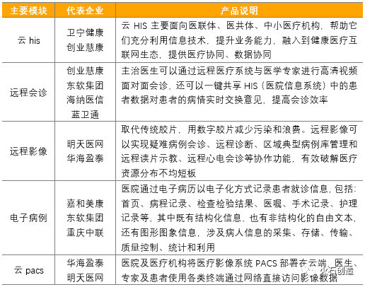 医院是医疗信息化的主要对象,围绕医院信息化构建的IT系统,分别支撑医疗、医保和医药,是医疗信息化的主要环节。其中医疗IT是核心,主要包括HIS(医院管理系统)、PACS(影像归档和管理系统)、分级诊疗平台等。