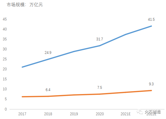 图4:2017—2022E产业数字化、数字产业化市场规模(E代表预测数据)