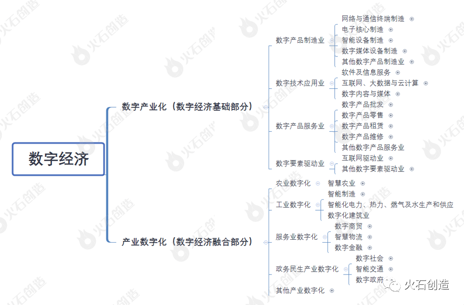 数字产业化具体可以细分为:数字产品制造业、数字技术应用业、数字产品服务业、数字要素驱动业,如近年来的人工智能、云计算、大数据等新兴产业属于数字技术应用业。