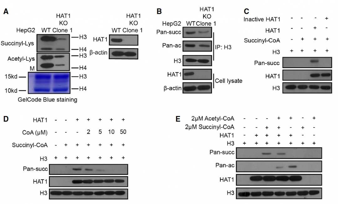 1、HAT1能够在肝癌细胞中调控多个蛋白的琥珀酰化修饰