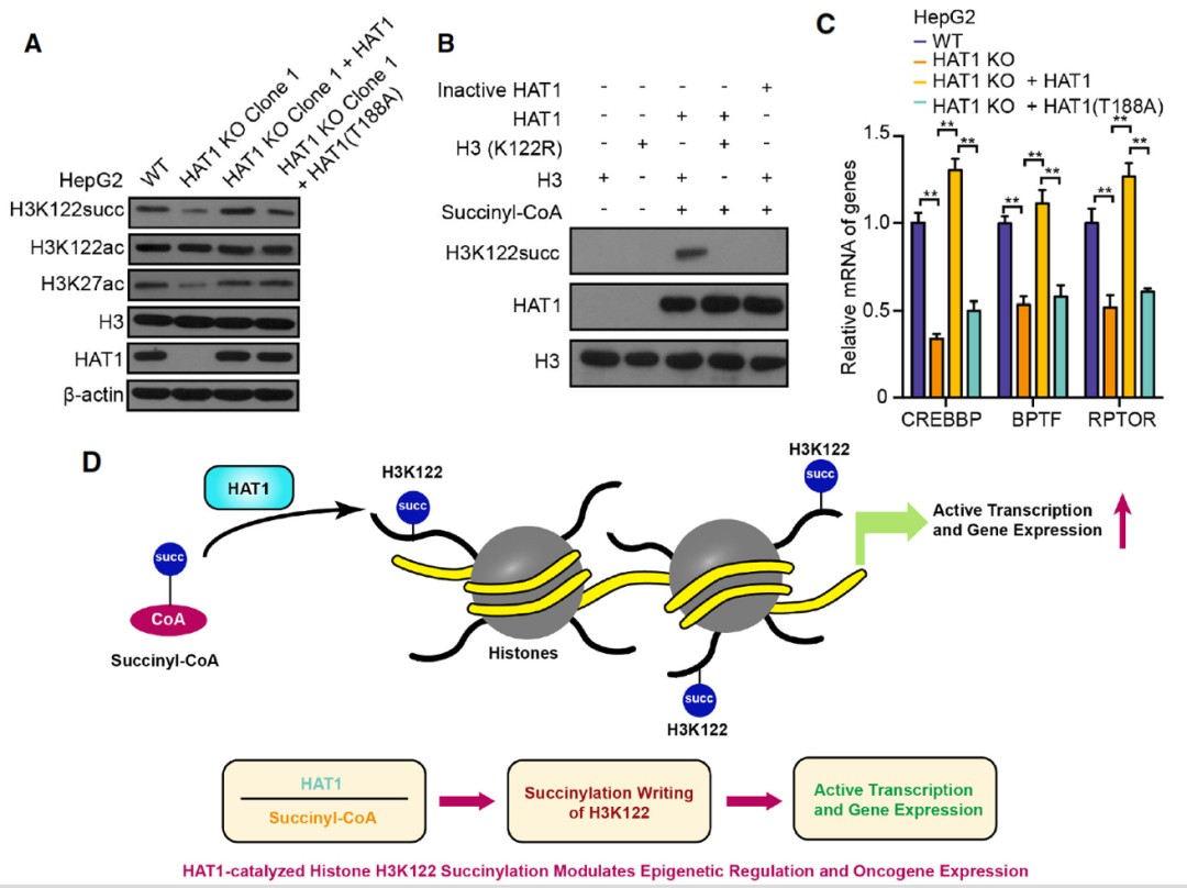 首次阐明了组蛋白乙酰转移酶HAT1具有琥珀酰转移酶功能,可影响表观遗传调控过程及相关基因的表达激活。