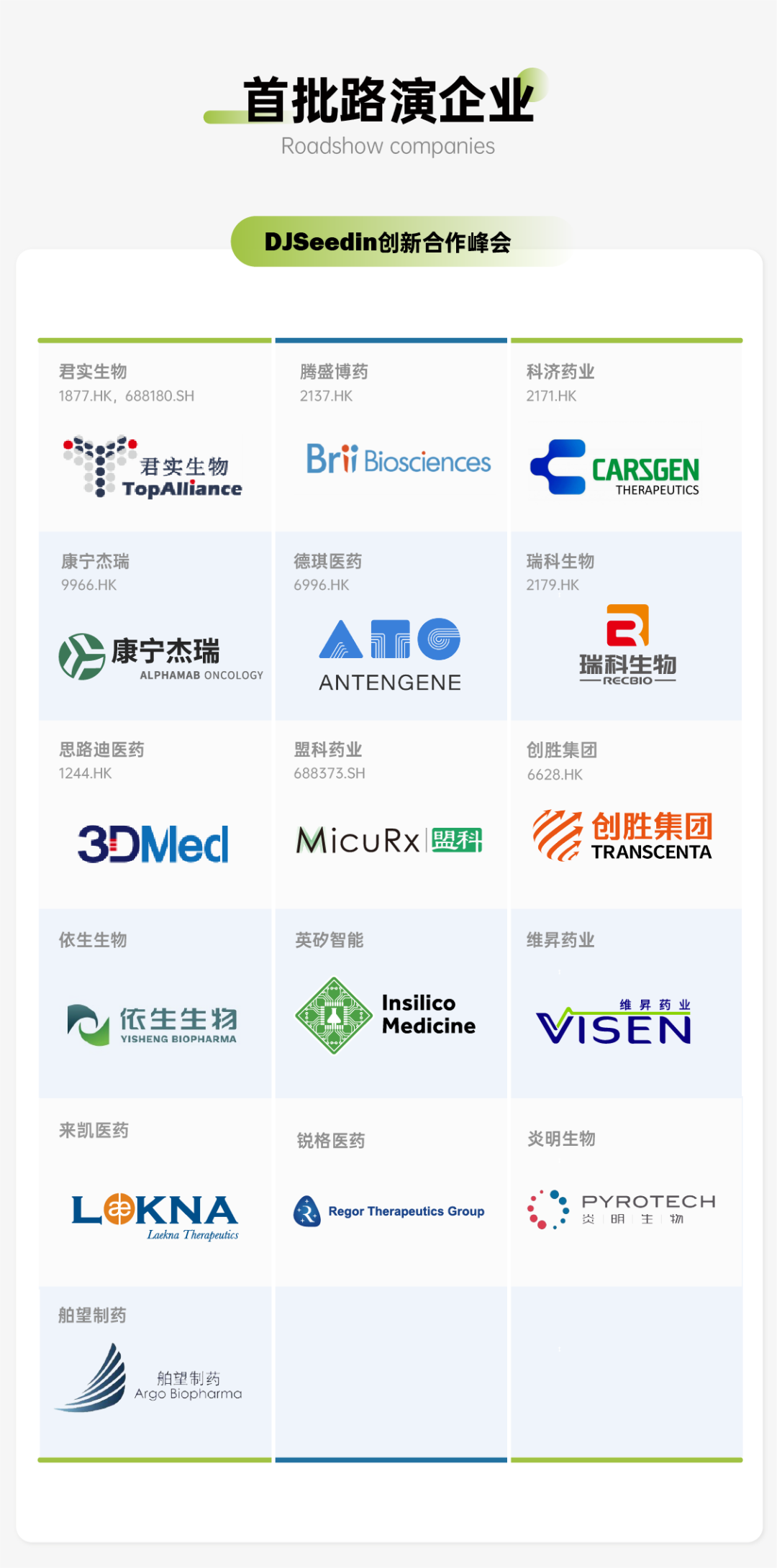 路演征集范围:药企(上市公司、临床阶段公司、早期技术公司、AI公司)