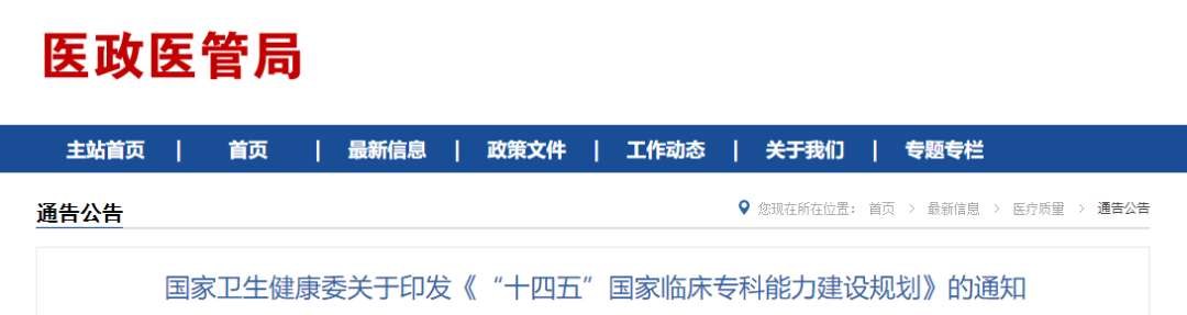 为进一步加强临床专科能力建设,充分发挥临床专科能力建设对推动公立医院高质量发展的重要作用,指导各地做好“十四五”临床专科能力建设工作,国家卫健委组织制定并印发了《“十四五”国家临床专科能力建设规划》(以下简称《规划》)。