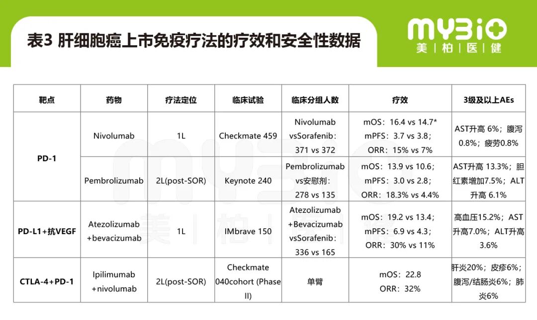 截至目前,美国FDA共批准4款免疫检查点抑制剂的单用或联用疗法上市一线/二线治疗肝细胞癌,分别是:阿替利珠单抗 (PD-L1) 联用贝伐珠单抗 (VEGF) ,伊匹木单抗 (CTLA-4) 联用O药 (Nivolumab,PD-1) ,以及单用K药 (Pembrolizumab,PD-1) 或者单用O药。目前BMS已经撤回O药单用治疗肝癌的疗法。