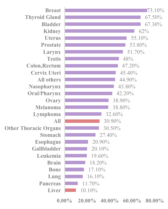 肝癌是中国发病率排第4位、死亡率排2位的恶性肿瘤,患者五年生存率只有10%。肝癌有效治疗药物十分匮乏,索拉非尼的上市填补了肝癌一线靶向用药的空白,但是它也只能延长近3个月的总生存期,ORR只有2%-3%。