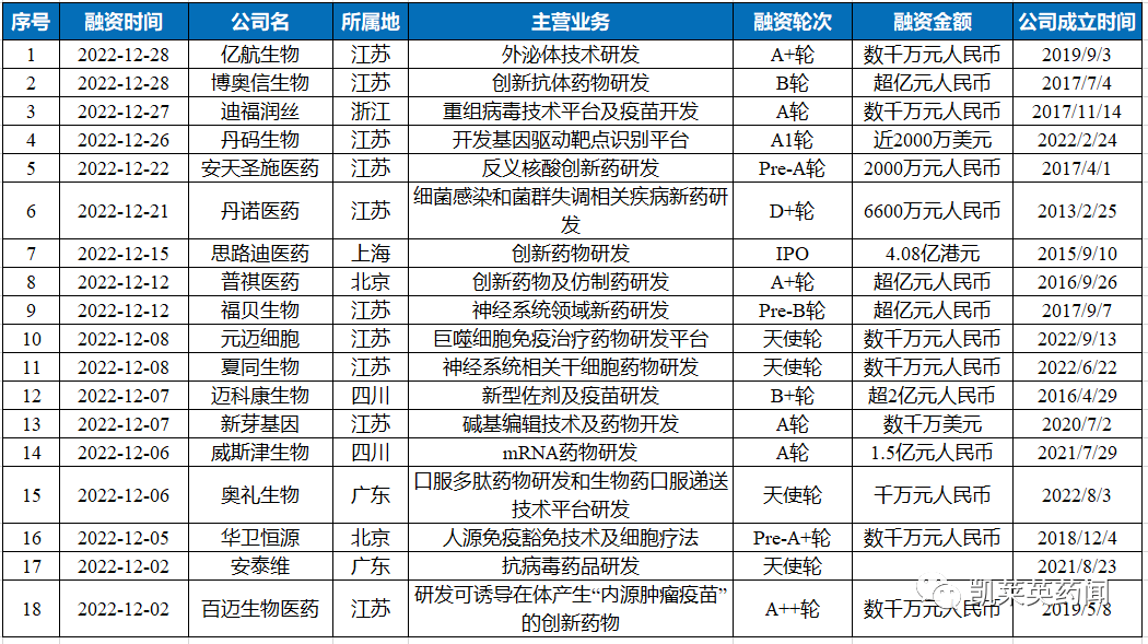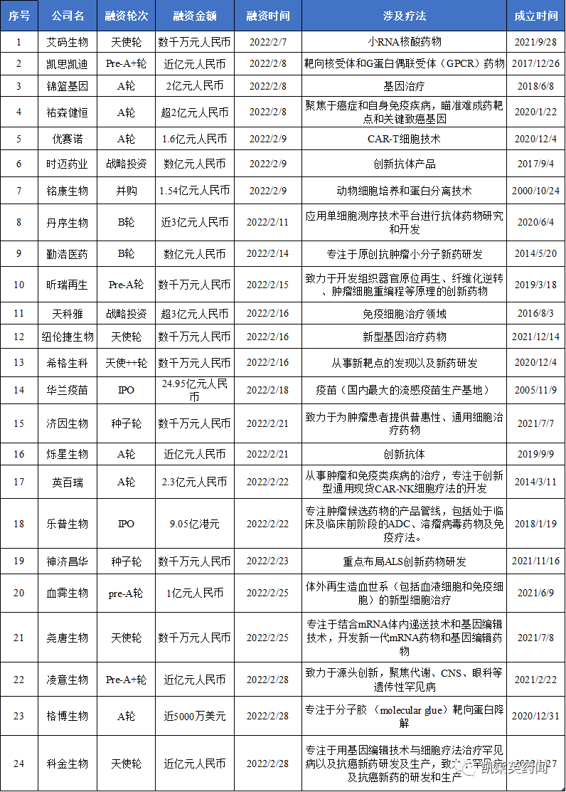 药选址2022年12个月中,我国有285家创新药领域企业完成融资。在细分赛道上看,主要有疫苗、抗体药、细胞/基因治疗、干细胞治疗等领域。如有还未统计上的企业,请在文末加小编微信,私信我,谢谢!