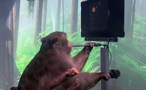 图 | 植入脑机芯片的猕猴在玩电子游戏(来源:YouTube)