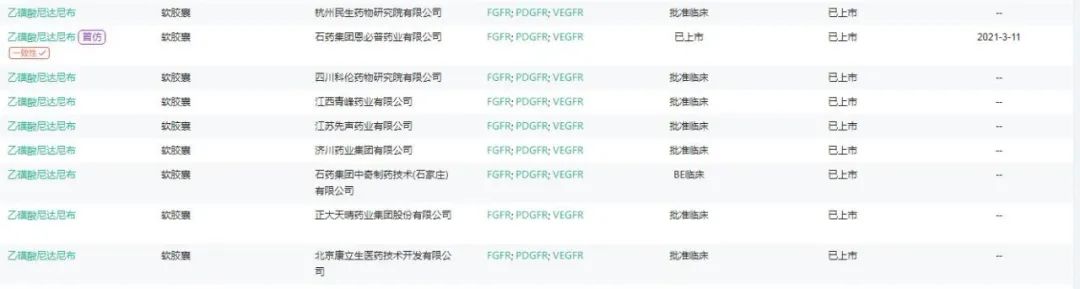 部分布局尼达尼布的国内药企(图片来源:医药魔方PharmaGO数据库)
