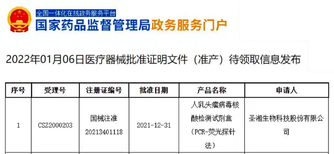 助力宫颈癌筛查!圣湘生物又一新产品获批上市
