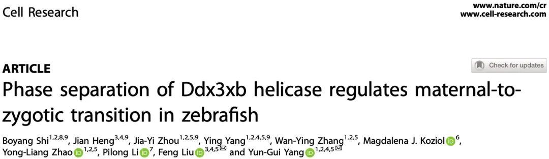 揭示了早期胚胎发育过程中RNA解旋酶Ddx3xb通过相分离调控母源mRNA翻译的新机制。