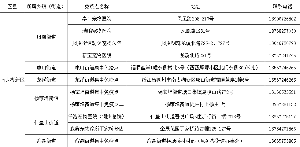 2022年度南太湖新区犬只狂犬病免疫接种点公告