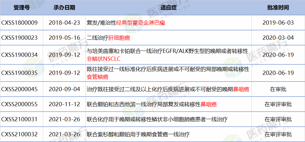 此次即将获批适应症为:用于既往接受过二线及以上化疗后疾病进展或不可耐受的晚期鼻咽癌患者的治疗。获得批准后,将会是卡瑞利珠单抗获批的第5项适应症。
