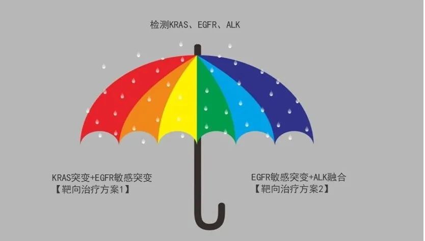 伞式试验(Umbrella Trial)即一项试验中评估多种产品,将不同的靶点基因检测在同一时间里完成,然后根据不同的靶基因分配相应的精准靶向药物治疗的研究。以肺癌为例,把KRAS、EGFR、ALK等不同的驱动基因聚在同一把雨伞下进行研究。“伞式试验”的优势是将非常少见的突变事件集中起来,变少见事件为“常见”事件,既有助于少见疾病临床试验的开展,也有助于患者获得精准治疗的机会。