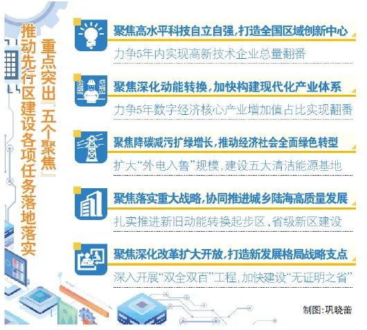 “支持山东建设绿色低碳高质量发展先行区,是党中央提出‘双碳’战略以来,全国第一个以绿色低碳高质量发展为主题的战略布局;是新中国成立以来,第一个以国发文件赋予山东的重大战略使命。”省发展改革委主任孙爱军说,将扎实推动先行区建设各项任务落地落实,重点突出“五个聚焦”。