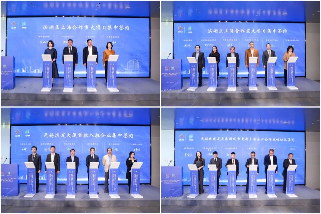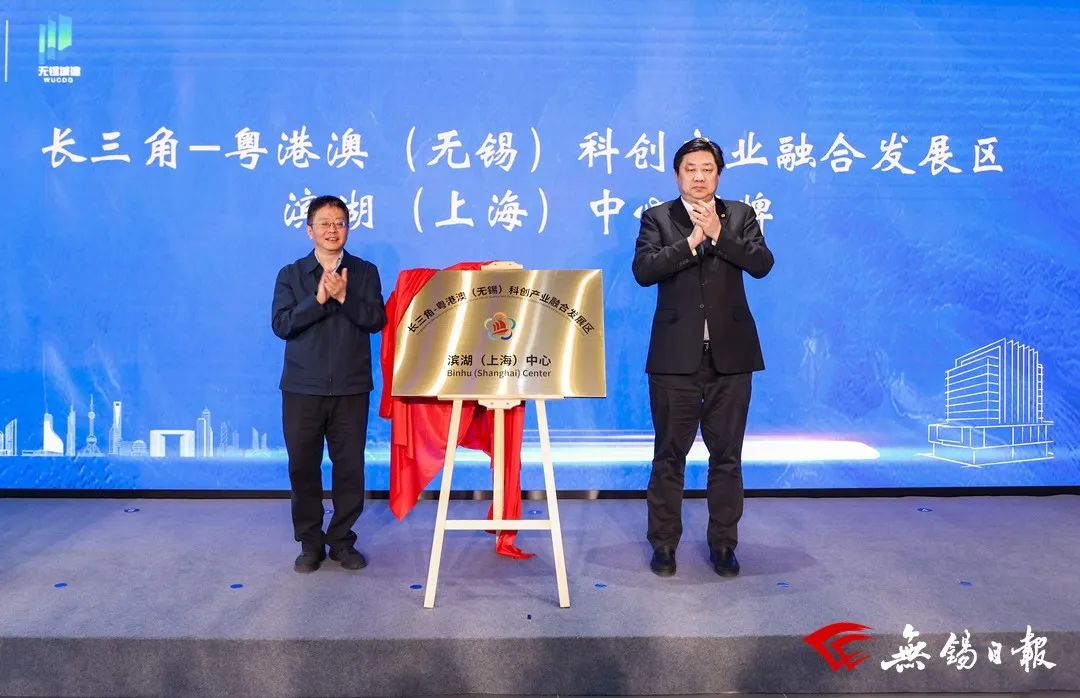 在无锡滨湖长三角产业合作洽谈会暨滨发大厦启用仪式上,赵建军与长三角区域合作办公室常务副主任阮青共同为长三角-粤港澳(无锡)科创产业融合发展区•滨湖上海中心揭牌,并见证了一批科技含量高、带动能力强的产业项目现场签约入驻。