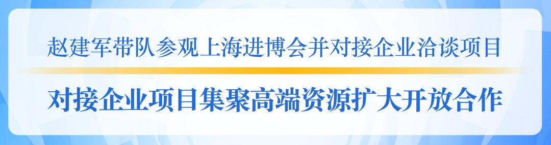 近日,市长赵建军带队在上海参观第五届中国国际进口博览会相关展区展台,对接企业洽谈合作,出席项目签约仪式。
