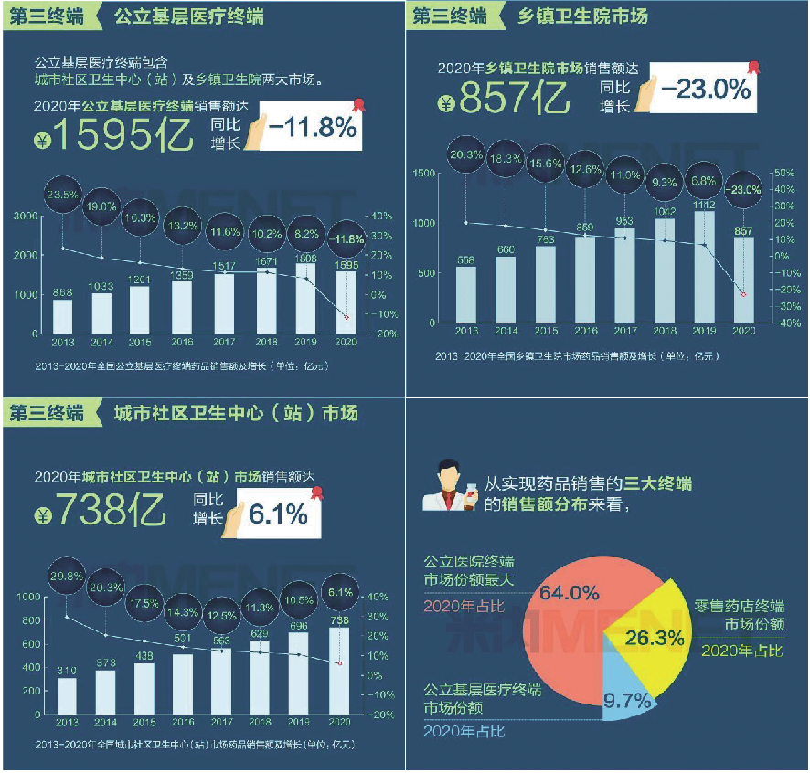 中国乡镇人口有6.74亿人,基层医疗还有大量未被满足的需求。据统计,2020年全国药品零售市场总量达3124亿。此外,下沉市场的4年复合增长率已大幅领先一二线城市。“乡村振兴带来新机遇。”李时珍医药集团总裁杨明江表示,之前很多基层医疗或药店拿不到品牌药,只能转卖小品牌产品。可小药厂不提供药学服务,没有附加的学术资源,纯粹靠返点拉动销售,因为县域市场消费者更关注价格。而今品牌药下沉必然会逐渐蚕食中小企业的产品。集采、一致性评价后,基层市场也会重新洗牌。